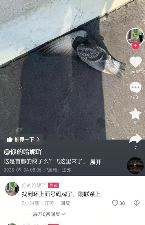 妹子一时好奇,拍了段视频发上网问“这是什么鸟?是鸽子吗?”,没成想评论区有人提醒她,“这看着像阅兵式上放飞的信鸽,脚环是身份标识!”